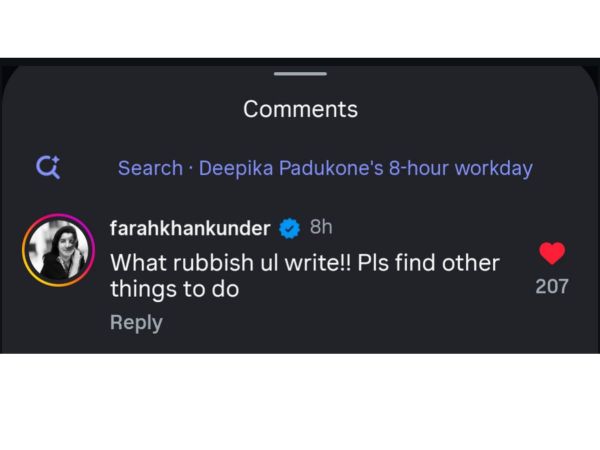 Talking to Pinkvilla, Farah Khan said, “To begin with, we were not following each other earlier, too!! We had made a pact during the Happy New Year shoot that we wouldn’t communicate on Instagram, instead, direct message and call. We don’t even wish birthday wishes on Insta because Deepika doesn’t like it. Also, my 8 hour comment wasn’t a dig it was to make Dilip say that he will now also work 8 hours when he actually works just for 2 hours!”