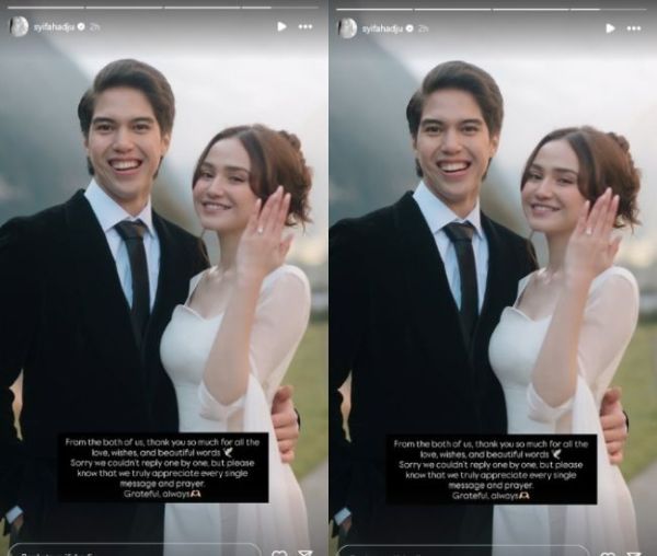 (Dari kami berdua, terima kasih banyak atas semua cinta, harapan, dan kata-kata indahnya. Maaf kami tidak bisa membalas satu per satu, tetapi ketahuilah bahwa kami sangat menghargai setiap pesan dan doa. Bersyukurlah, selalu.)" tulisnya.