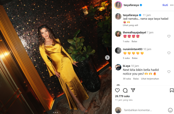 "So my name ... my name is tasya hadad," tulisnya.