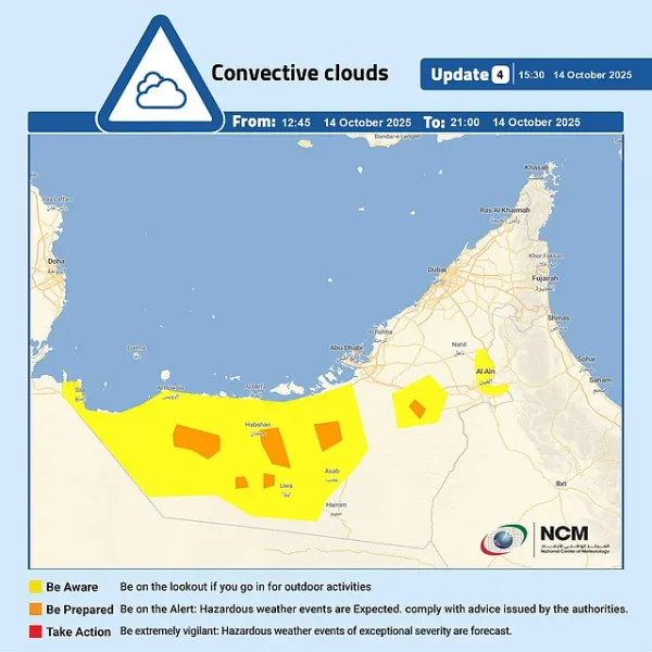 Don't forget your umbrella if you're heading out today! Heavy rains persisted on Tuesday, October 14, in parts of the UAE, as the low pressure system over the country resulted in lower temperatures and precipitation.