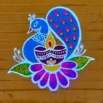 रंगोली घर की खूबसूरती को और बढ़ा देती है. लेकिन अगर आप रंगोली बनाने में ज्यादा प्रो नहीं हैं तो ये डिजाइन ट्राई कर सकती हैं. इसमें मोर और दीए का डिजाइन बनाया गया है. साथ ही एक फूल और 2 पत्तियों का पैर्टन दिया गया है. (Credit: kolam_tamil/Instagram)