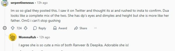 One user reacted, “Im so so glad they posted this. I saw it on Twitter and thought its ai and rushed to insta to confirm. Dua looks like a complete mix of the two. She has dp's eyes and dimples and height but she is more like her father. OmG i can't stop gushing.”
