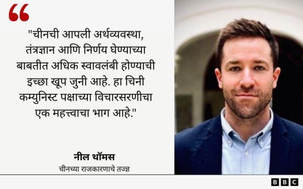 नील थॉमस म्हणतात, "राष्ट्रीय सुरक्षा आणि तांत्रिक स्वातंत्र्य आता चीनच्या आर्थिक धोरणाचा मुख्य उद्देश बनला आहे. हे त्या राष्ट्रवादी विचारांशी जोडलेलं आहे ज्यांनी चीनमध्ये कम्युनिझम जन्माला आणला, जेणेकरून देश पुन्हा कधीही परकीय शक्तींच्या अधीन होऊ नये."