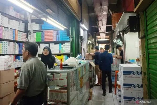 Pada Kamis, Perumda Pasar Jaya melakukan penutupan sementara kios farmasi di Pasar Pramuka, Jakarta Timur.