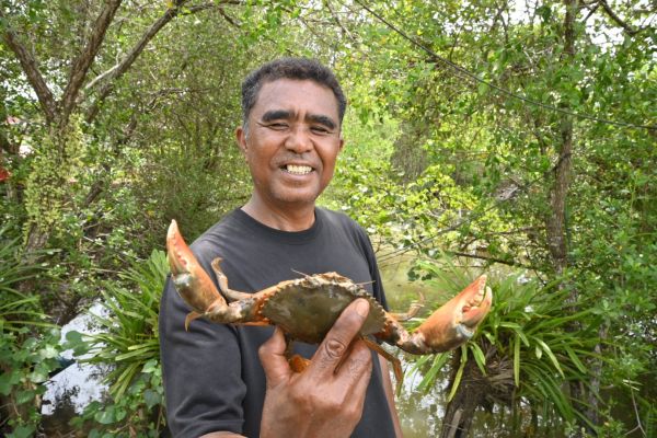 “ตอนนี้ ปูขาวขายได้กิโลกรัม 450 บาท แต่มีต้นทุนการเลี้ยงที่กิโลกรัม100 บาท ในหนึ่งบ่อจะจับปูได้ประมาณ 500 กิโลกรัม เทียบกับการเลี้ยงกุ้ง ถ้าลงทุน 1ล้านบาท จะจับได้ 3แสนบาท ส่วนปูลงทุน3แสนจะขายได้ 4.5 แสนบาท ส่วนหนึ่งเพราะปูทนต่อโรคต่างๆมากกว่ากุ้ง แต่ปูทนกับสภาพแวดล้อมไม่ดีไม่ได้ ส่วนกุ้งทนสภาพแวดล้อมแย่ได้ แต่ทนต่อโรคไม่ได้ จึงต้องใช้ยาเยอะ ต้นทุนจึงสูงรวมทั้งเมื่อรวมกับต้นทุนอาหารต่างๆด้วย ขณะที่ปูจะใช้ต้นทุนน้อยกว่า “