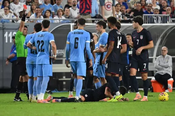 Tottenham midfielder Rodrigo Bentancur was shown a straight red card in Uruguay's embarrassing 5-1 capitulation at the hands of the United States on Tuesday night.