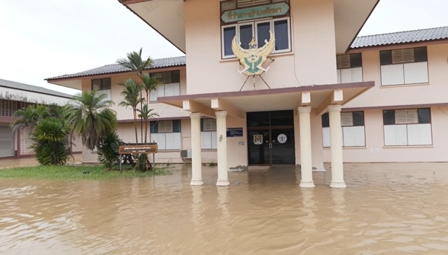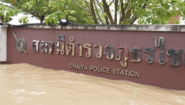 ส่วนสถานการณ์น้ำท่วมในเขตย่านเศรษฐกิจของเทศบาลเมืองไชยา ยังคงมีระดับสูง เรือนจำอำเภอไชยาถูกน้ำท่วมหนัก เจ้าหน้าที่เร่งสูบน้ำออกจากพื้นที่ ส่วนใน