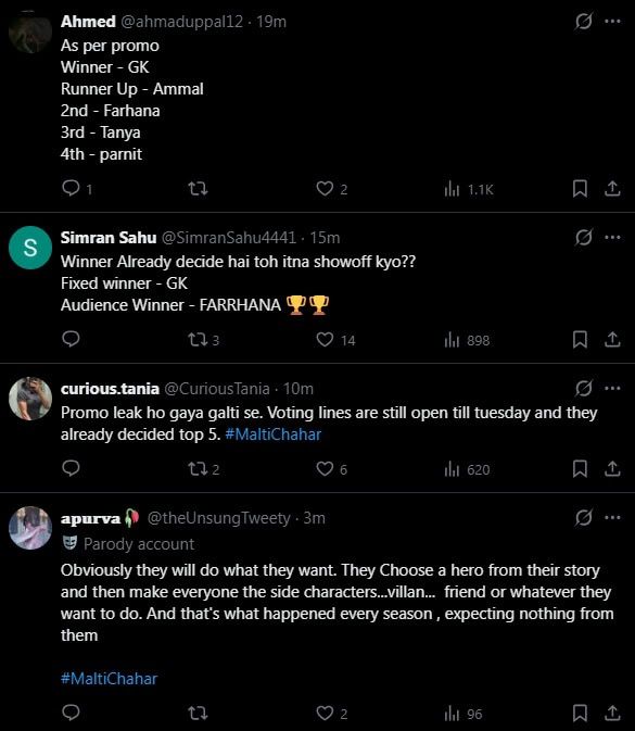 For the unversed, a mid-week eviction is planned, and voting lines will remain open until Tuesday morning. Except for Gaurav, all contestants Amaal, Malti, Tanya, Farrhana and Pranit are nominated for eviction.