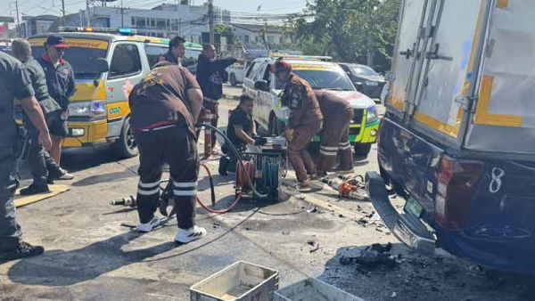 ที่เกิดเหตุพบรถบรรทุกกึ่งพ่วง (รถบรรทุกไม่ประจำทาง) ยี่ห้อ มิตซูบิชิ ทะเบียน 68 9070 กทม. ผู้ขับขี่คือ นายโชคนิวัฒน์ อายุ 59 ปี เสียชีวิตในที่เกิดเหตุ ใกล้กันพบ รถกระบะ อีซูซุ ดีแม็กซ์ ทะเบียน 2 ฒค 5533 กทม. ผู้ขับขี่คือนายนพดลอายุ 37 ปี ได้รับบาดเจ็บ ถูกนำส่งโรงพยาบาลกรุงเทพ