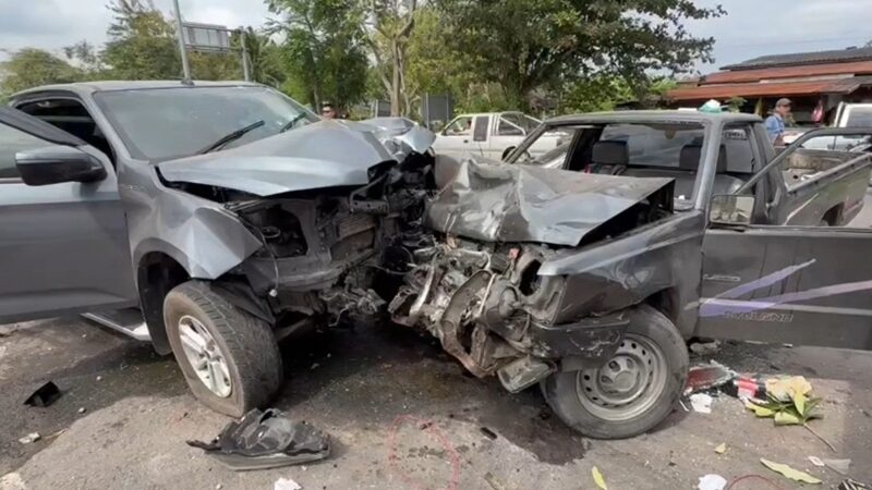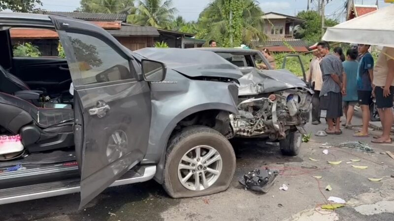 สุดสลด พ่อค้าปลาทูนึ่ง วัย 38 ปี โหมงานหนัก ขับรถหลับใน พุ่งข้ามเลนประสานงาอีกคัน ลุงวัย 60 ปีเสียชีวิต รถพังเสียหายยับเยิน 5 คันรวด บาดเจ็บอีก 2 ราย