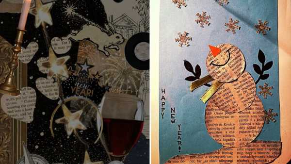 Cut out words such as joy, hope, new, dreams, or 2026 from old magazines. Glue them creatively on the card to form a message. Foam adhesive squares can be used behind certain elements to add depth and make the design stand out.
