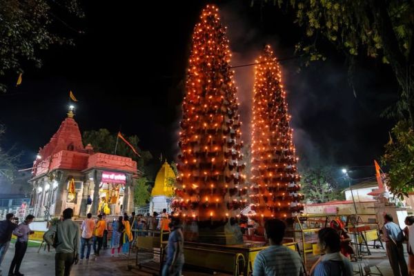 One of the 51 Shakti Peethas, the temple is known for its towering deepstambhas, especially striking during Navratri.
