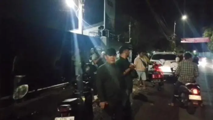 Kendaraan roda dua terlihat mogok dan terpaksa dituntun oleh pengendara.