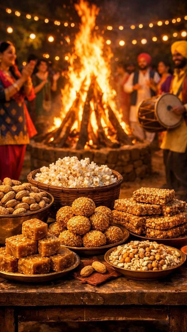 लोहरीचे पदार्थ - पंजाबपंजाबमध्ये लोहडीच्या दिवशी तीळ, गूळ, शेंगदाणे, मका आणि रेवडी यांचा समावेश असलेले पदार्थ खाल्ले जातात.