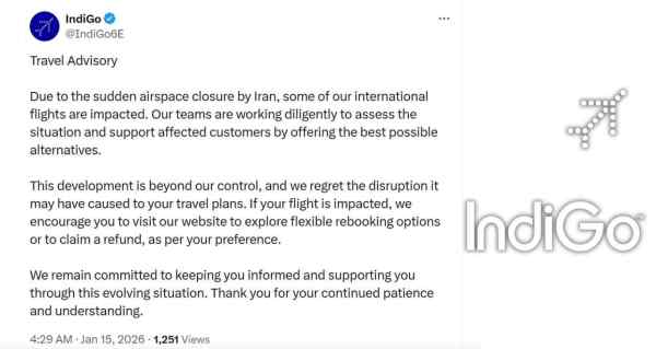 Soon after the closure of Iran airspace, Indian Airlines shared information through its official X account and website to alert passengers. Airlines clarified that this situation is beyond their control, but necessary steps are being taken keeping in mind the safety of passengers. Passengers have been requested to check the status of their flight before going to the airport.