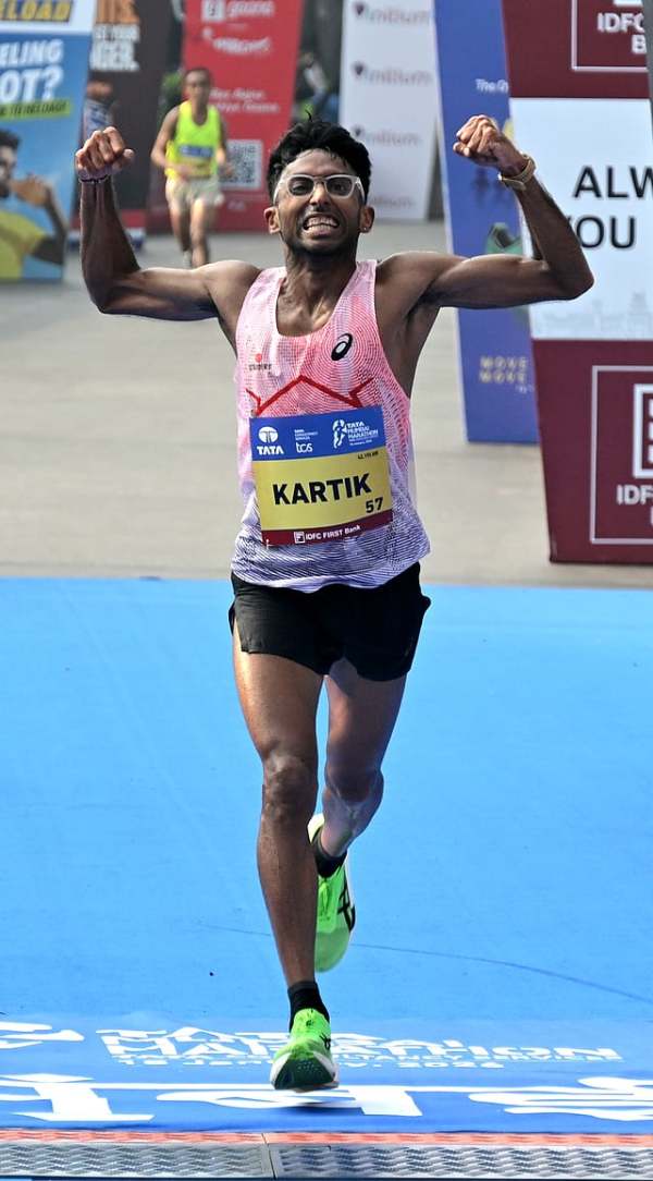 Kartik won the Indian Elite Men's Marathon with a timing of 2:19.55 ahead of xx