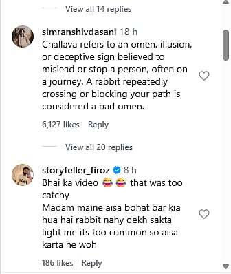 The video quickly drew mixed reactions online. Some users linked the incident to folklore. One comment read, “Challava refers to an omen, illusion, or deceptive sign believed to mislead or stop a person, often on a journey. A rabbit repeatedly crossing or blocking your path is considered a bad omen.”