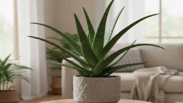 Aloe vera is a thorny plant that is beneficial for both beauty and health. Its thick, pointed leaves give a fresh and natural look to the house. Aloe vera can be easily grown both indoors and outdoors. It also helps in purifying the air, creating a better environment in the home.