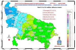 According to the latest daily report (28 January 2026) of Meteorological Center (IMD), Lucknow, the weather is likely to remain dry in Western Uttar Pradesh from 29 to 31 January and in Eastern Uttar Pradesh from 29 January to 1 February. Dense fog is expected in the morning and evening in eastern and western Uttar Pradesh from 28 to 30 January. Due to the effect of western disturbance which became active on January 30, there is a possibility of rain and thundershowers in western Uttar Pradesh from February 1 to 3. There is a possibility of rain at isolated places in eastern Uttar Pradesh on 2-3 February, during which there will be fluctuations in maximum and minimum temperatures.