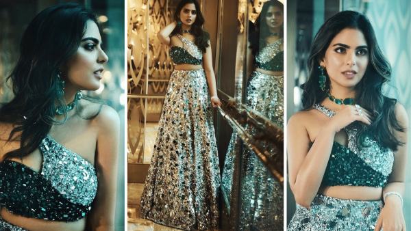 In one of her most talked‑about modern lehenga looks, Isha wore a silver Manish Malhotra lehenga with green Swarovski crystals and a one‑shoulder blouse. The metallic base, strategic shimmer and asymmetric neckline made it perfect for night celebrations, especially if you want your outfit to catch the lights on the dance floor without feeling OTT. Brides of 2026 can borrow this idea by pairing a metallic or mirror‑worked lehenga with a contemporary blouse cut and one strong accent colour in the jewellery, like emerald or turquoise.