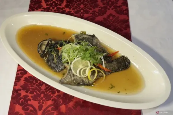 Kerapu putih yang disajikan utuh, dikukus dengan jahe dan daun bawang, lalu disiram saus kecap berpadu minyak wijen panas. Itulah hidangan khas pesisir Cirebon yang menonjolkan cita rasa alami dan manis lembut daging ikan.
