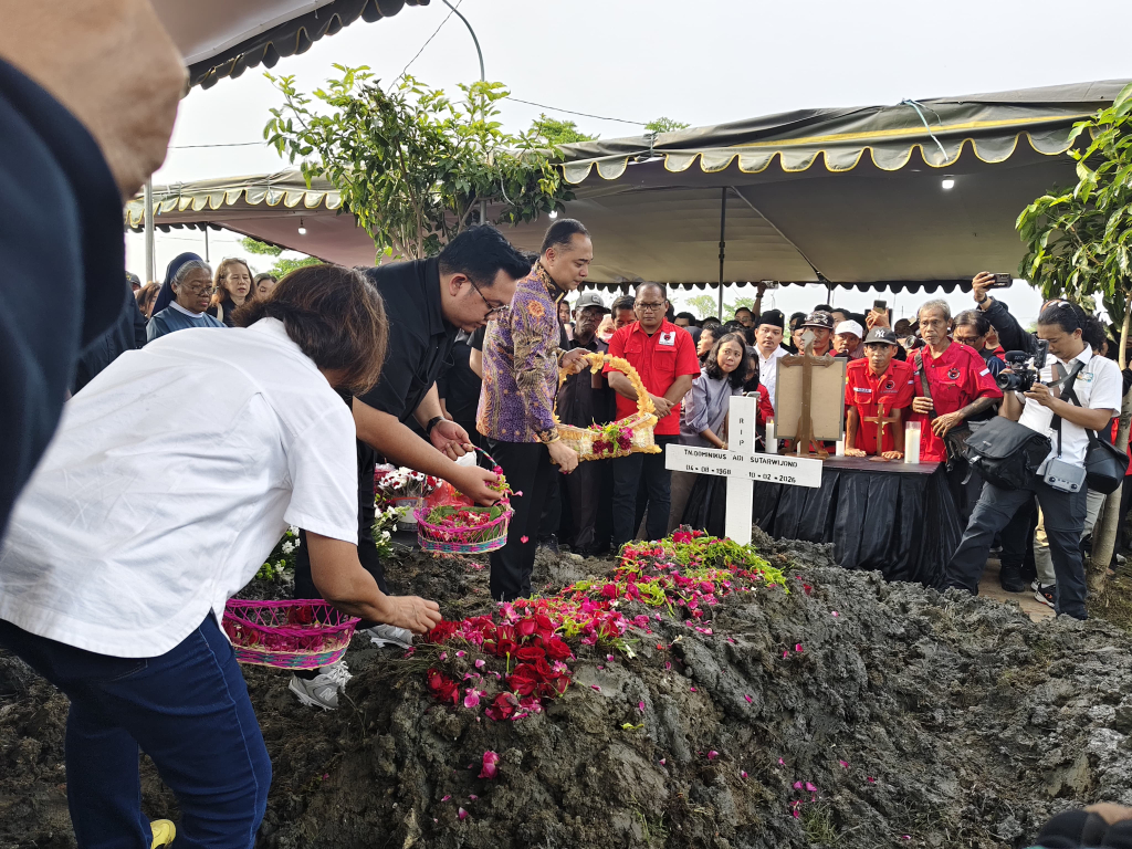 selalu.id - Jenazah Ketua DPRD Kota Surabaya, Dominikus Adi Sutarwijono alias Cak Awi dimakamkan di Tempat Pemakaman Umum (TPU) Keputih, Kecamatan Sukolilo, Kota Surabaya, usai mendapat penghormatan terakhir di Gedung DPRD Surabaya, Kamis (12/2/2026).