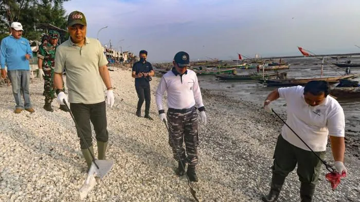 Petugas kepolisian dibantu warga sekitar berupaya mengevakuasi korban menggunakan tali dan peralatan seadanya sebelum akhirnya berhasil dikeluarkan.