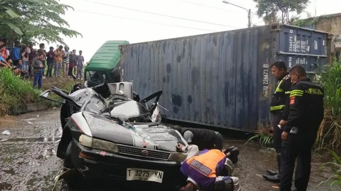 Hujan di tengah lalu lintas yang ramai karena momen libur panjang Imlek 2026.