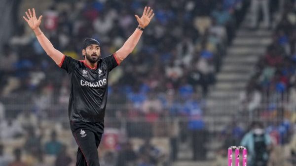 Canada’s chase never really gathered momentum after captain Dilpreet Bajwa’s brief 13 off seven ended in the third over.
