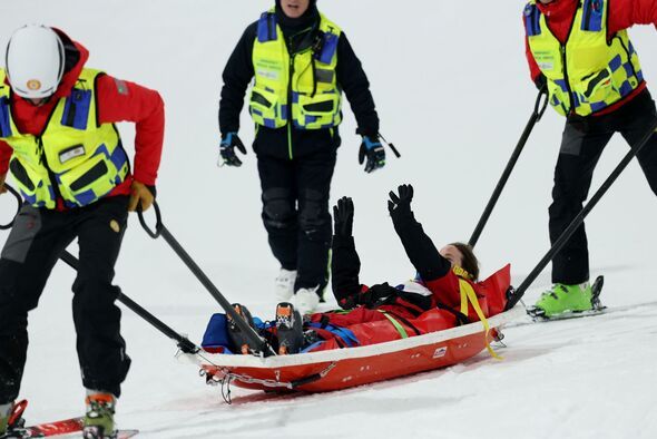 She received treatment for around nine minutes before she was stretchered off for further medical examination. In a positive sign, the skier waved to the crowd as she was taken away from the venue.