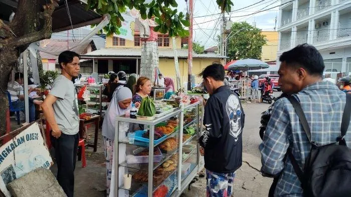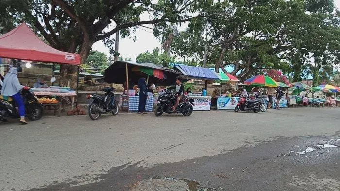 Puluhan warga terlihat memadati lapak-lapak pedagang kaki lima (PKL) yang berderet.