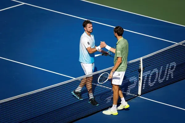 Daniil Medvedev shakes hands with Wawrinka after the match.