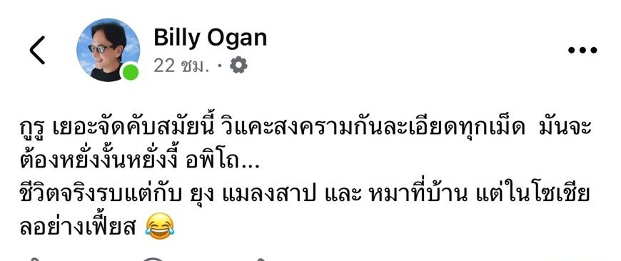 ออกมาแสดงความคิดเห็นผ่านโซเชียลอยู่บ่อยๆ สำหรับนักร้องดังอย่าง บิลลี่ โอแกน หลายคนที่ติดตามก็ได้เข้าไปแสดงความคิดเห็นกันจำนวนมาก จนในบางครั้งก็กลายเป็นดราม่าในโซเชียลอยู่บ่อยๆ