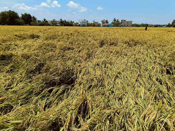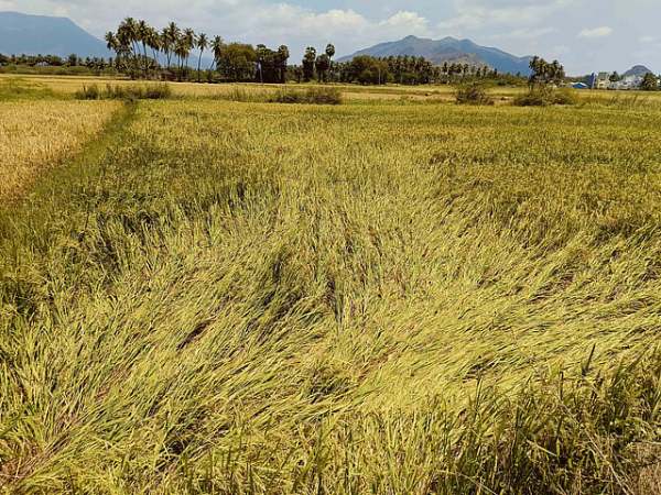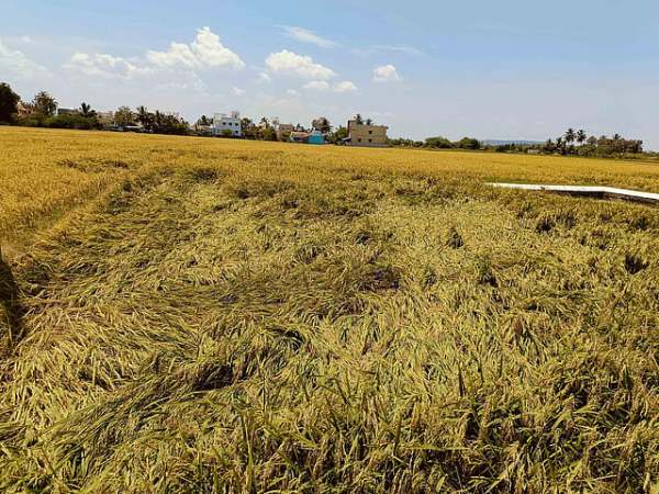 நெல் வயல்கள் சாய்ந்து நெல்மணிகள்