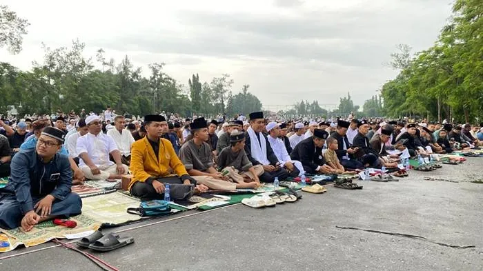 Ibadah dimulai sekitar pukul 06.40 WIB dan diikuti ratusan jemaah.