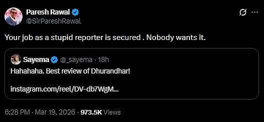 An RJ shared a reel on X, in which two guys have sarcastically reviewed Dhurandhar 2. Paresh Rawal took to X to slam the RJ. Read on to know more...