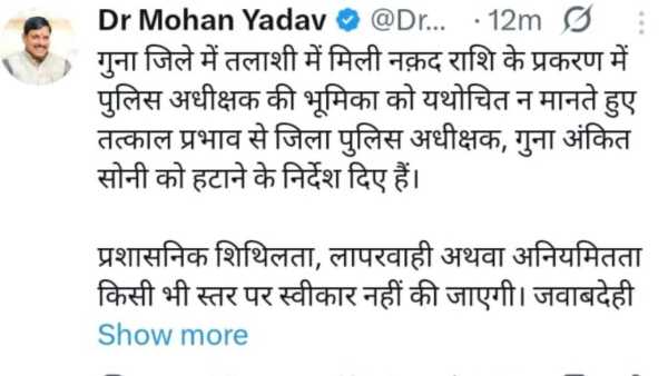 मध्य प्रदेश के गुना जिले में वाहन चेकिंग के दौरान सामने आए करोड़ों की नकदी के संदिग्ध मामले ने बड़ा प्रशासनिक भूचाल ला दिया है. इस पूरे प्रकरण में गंभीर अनियमितता और लापरवाही सामने आने पर सख्त कार्रवाई करते हुए जहां एक और पुलिस अधीक्षक अंकित सोनी को हटा दिया गया है, तो वहीं थाना स्तर पर भी बड़ी कार्रवाई देखने को मिली है. धरनावदा थाना प्रभारी, रूठियाई चौकी प्रभारी सहित कुल 4 पुलिसकर्मियों को तत्काल प्रभाव से निलंबित कर दिया गया है.