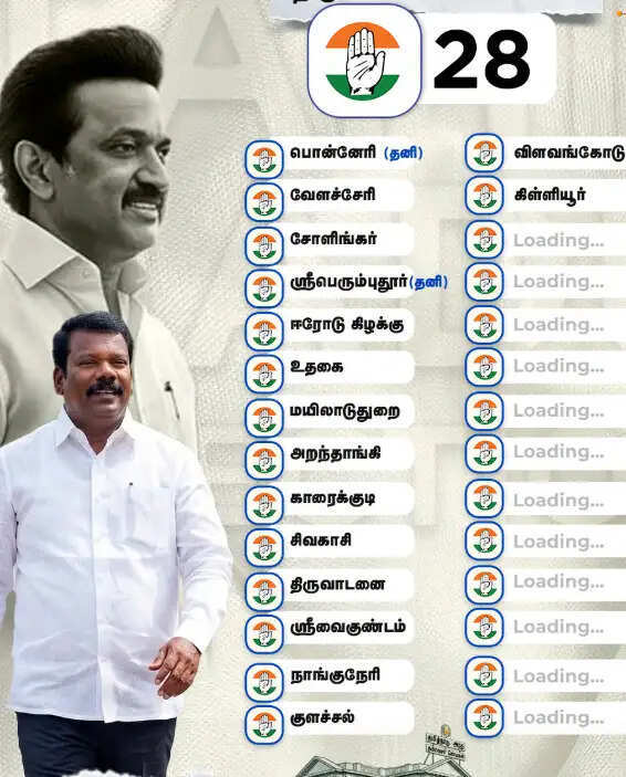 தமிழ்நாடு சட்டமன்றப் பொதுத்தேர்தலில் திமுக கூட்டணியில் உள்ள காங்கிரஸ் கட்சிக்கு ஒதுக்கப்பட்ட 28 தொகுதிகளில் முதற்கட்டமாக, 16 தொகுதிகளின் பட்டியலை திமுக வெளியிட்டுள்ளது. அதனை காங்கிரசும் அதிகாரப்பூர்வமாக உறுதி செய்துள்ளது. மற்ற 12 தொகுதிகளில் தொடரும் இழுபறி நீடிப்பதாக கூறப்படுகிறது. இதுகுறித்து தமிழ்நாடு காங்கிரஸ் கமிட்டி தலைவர் செல்வப்பெருந்தகை கூறுகையில், “கடந்த முறை போட்டியிட்ட 25 தொகுதிகளில் மீண்டும் 16 தொகுதிகளை பெற்றுள்ளோம். அந்த 16 தொகுதிகளும் கடந்த முறை காங்கிரஸ் வெற்றி பெற்ற தொகுதிகளாகும்” என்றார்.