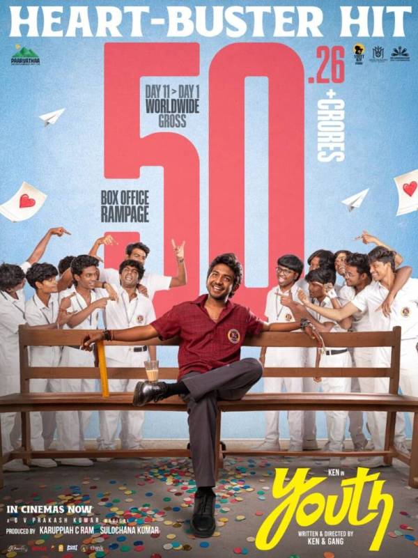இந்த நிலையில் படம் வெளியான 11 நாட்களில் உலகளவில் சுமார் ரூ. 50.26 கோடியை வசூலித்து புதிய மைல் கல்லை எட்டியுள்ளது. படக்குழு இதனை அதிகாரபூர்வமாக அறிவித்துள்ளனர். இதன் மூலம் 2026-ஆம் ஆண்டில் மிக அதிக லாபம் ஈட்டிய தமிழ் திரைப்படங்களின் பட்டியலில் ‘யூத்’ முன்னணி இடத்தைப் பிடித்துள்ளது.