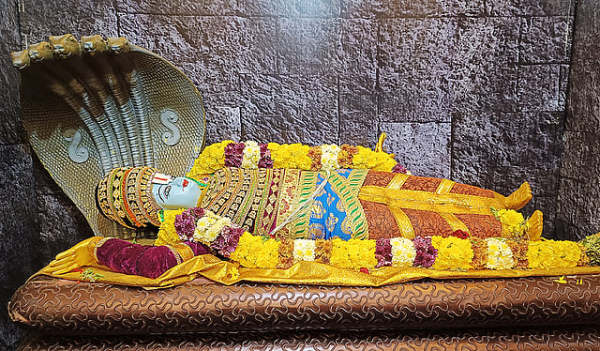 இந்த சிவன் கோயிலில் ஒரு எருமை மாடு பலியிடுவதற்கு தலையைக் குனிந்து கொண்டிருப்பதைப் போன்ற சிலை இருக்கிறது. தட்சிணாமூர்த்தி வழக்கத்திற்கு மாறாக கால் மேல் கால் போட்டு அமர்ந்தவாக்கில் இருக்கிறார்.
