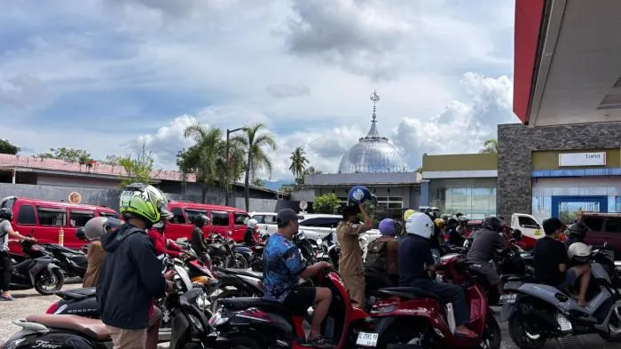 Di antara kendaraan tersebut, tampak mencolok sebuah Mercedes-Benz GLE putih yang tengah diperiksa petugas.