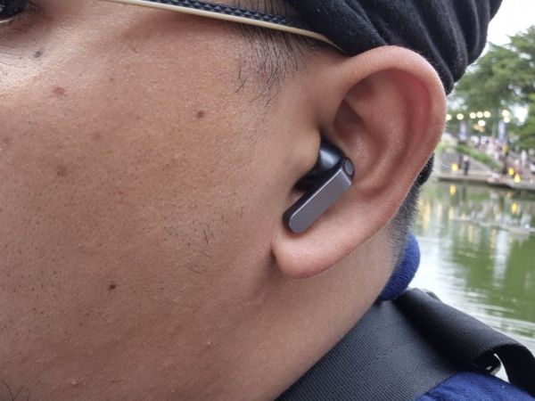 Desain open-type berarti earbud tidak menggunakan eartips silikon, sehingga unit hanya bertumpu pada lekukan telinga. Pendekatan ini memiliki dua implikasi utama.