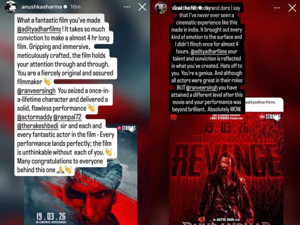 Dhurandhar: The Revenge has truly been making a mark ever since its release on March 19, 2026. Industry folks have praised the movie, Aditya Dhar’s vision and Ranveer Singh’s performance among other things. The film has received glowing reviews from even the audience and the movie has managed to find a solid fan base. And now, adding to that is Anushka Sharma and Virat Kohli’s social media post.
