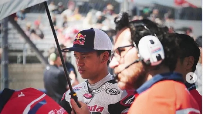 Ia datang dengan gaya santai yang khas, mengenakan celana panjang warna krem, jersey LavAni berwarna hitam, serta vest krem yang kerap ia gunakan dalam berbagai agenda nonformal.
