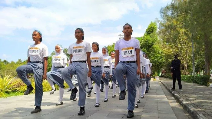Mereka tampak mengenakan baju tahanan berwarna oranye dengan tangan terikat, dikawal ketat oleh aparat berseragam lengkap dan bersenjata.