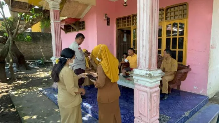 Petugas gabungan turun dengan memakai sepatu bot dan membawa jaring kecil penangkap ikan.