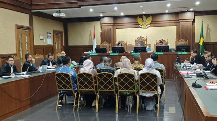 Setelah memberikan kesempatan beberapa menit kepada para terdakwa ke tim penasihat hukumnya, majelis hakim pun menanyakan kepada tim penasihat hukum para terdakwa.