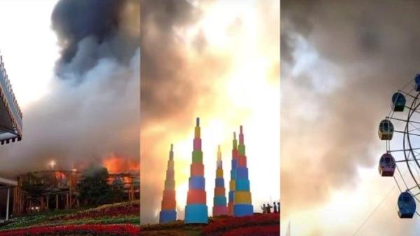 Pada kejadian itu, sebuah bangunan di belakang tempat wisata itu ludes terbakar.