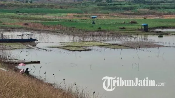 TRIBUNJATIM.COM, MADIUN - Musim kemarau yang sangat panas, mengakibatkan volume air di Waduk Dawuhan, Desa Plumpungrejo, Kecamatan Wonoasri, Kabupaten Madiun, Jawa Timur, menyusut drastis, Senin (2/9/2024).