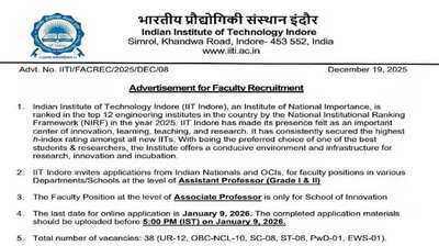 IIT Indore Recruitment 2025: Apply for Assistant Professor and Associate Professor Posts, Check Salary and Eligibility